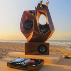 Sculptural Interpretations of the designed Speaker, Vinyl Record, and Stage created with Artificial Intelligence